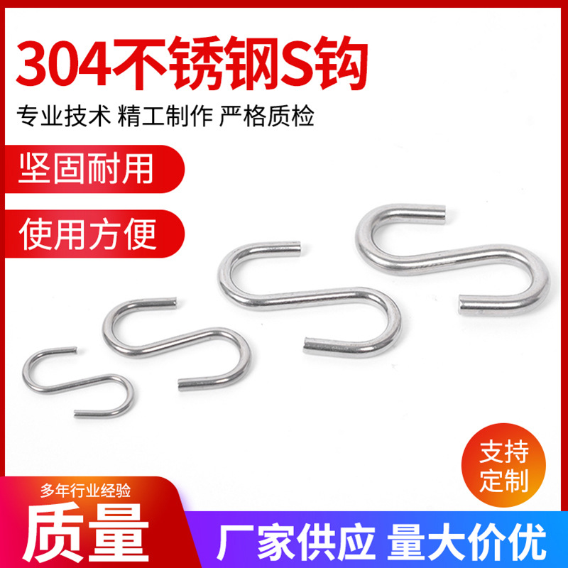Kait S baja tahan karat 304 kait S, kait S kait nyaman rantai kait tali kawat kait berbentuk S