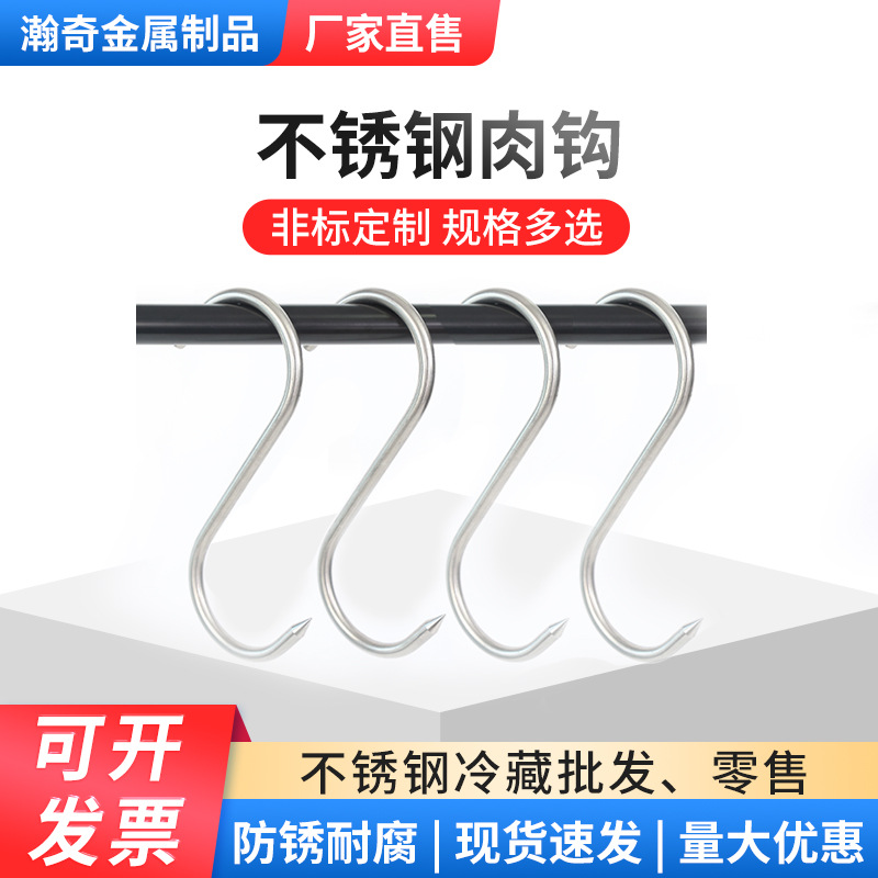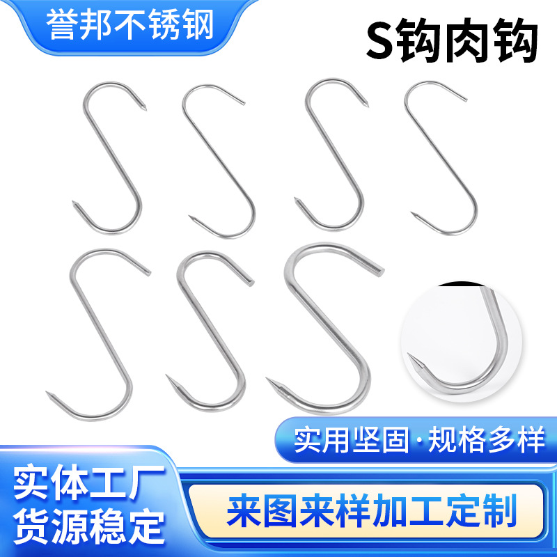 Kait daging stainless steel 304, kait gantung sapi dan domba, kait gantung rumah tangga, kait besi stainless steel S, kait gantung frozen