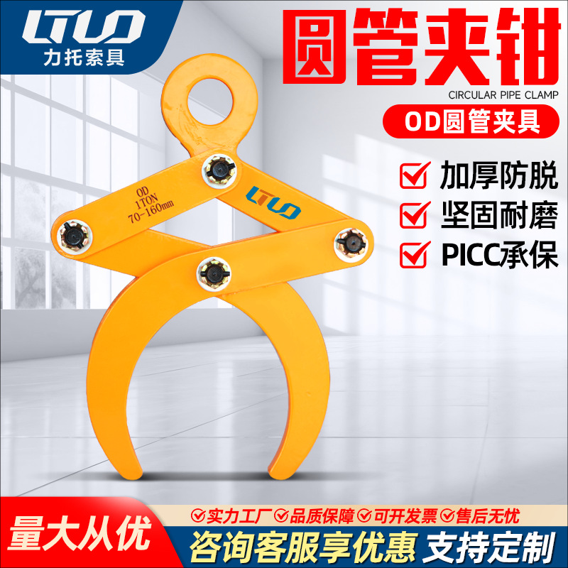 Klem Pipa Bulat OD 1 Ton 2 Ton 3 Ton Klip Pipa Bulat Pembukaan Besar Tang Pengangkat Pipa Besi Pipa Baja Tahan Ton-Besar
