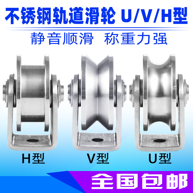 Katrol baja tahan karat 304, dengan bantalan tipe-u, roda alur tipe h, roda pintu geser, jalur pengangkat roda padat