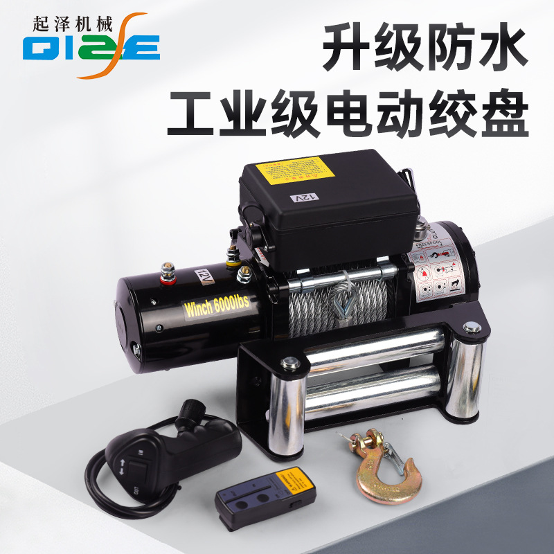 Qize derek listrik 12V, kendaraan off-road penyelamatan diri mobil winch 24v listrik mobil derek kecil