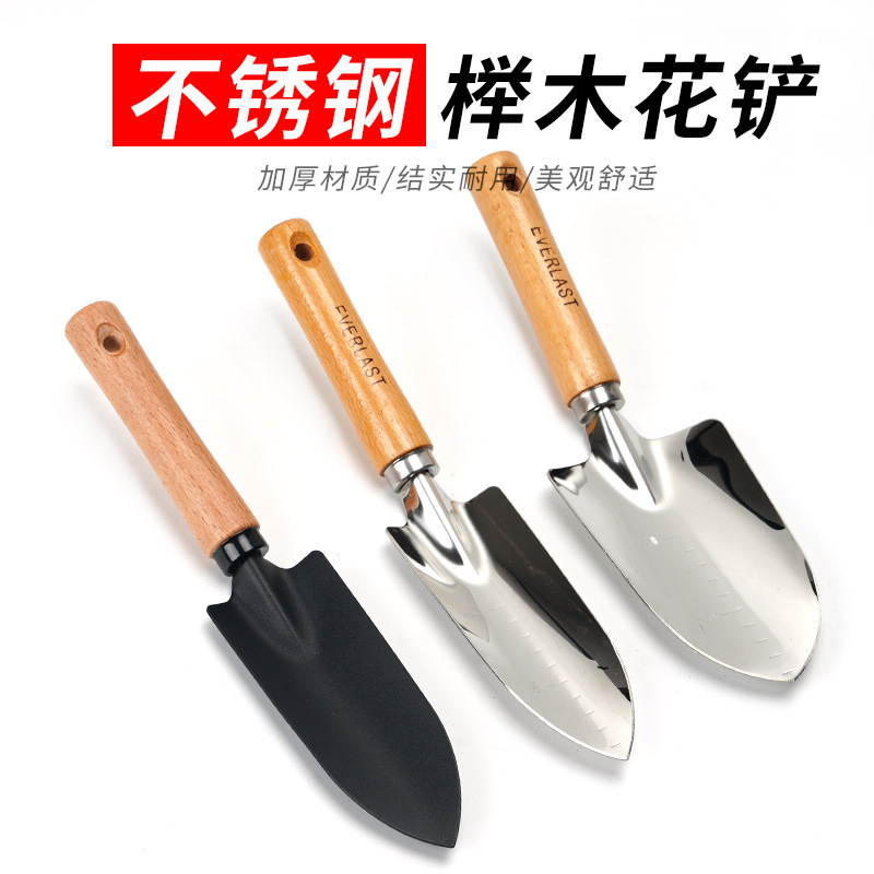 Harga promosi alat berkebun sekop kecil sekop bunga kecil sekop tanam bunga sekop berkebun sayuran balkon sekop ukur kayu beech stainless steel