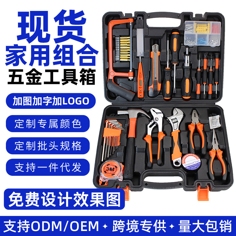 Grosir kotak peralatan setelan alat perangkat keras kombinasi peralatan pemeliharaan rumah tangga kotak alat pekerjaan kayu set hadiah real estate