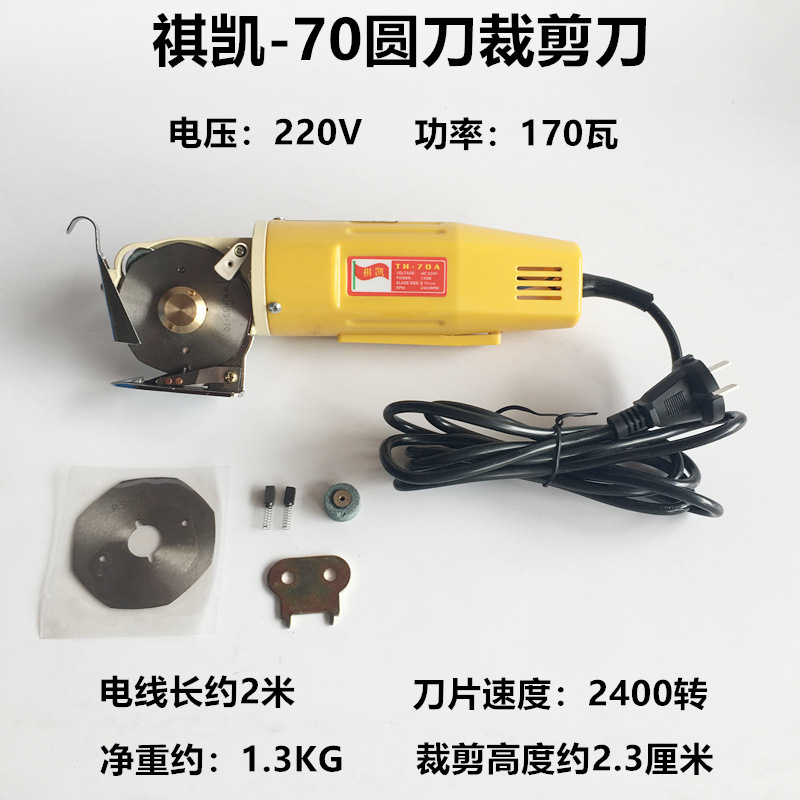 Qikai gunting pemotong genggam elektrik 70 tipe, pisau bulat, mesin pemotong kain, gunting pemotong pakaian elektrik kecil