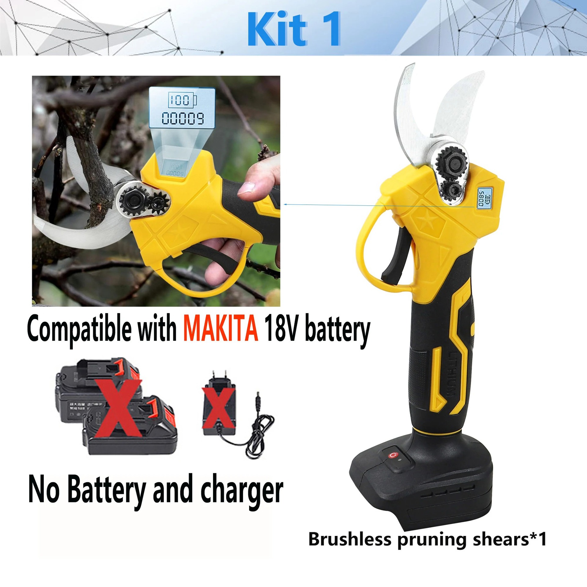 Gunting listrik tanpa kabel untuk berkebun, gunting pohon elektrik tanpa kabel dapat diisi ulang, gunting buah Lithium elektrik tanpa tampilan digital