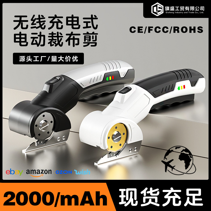 Mesin pemotong kain listrik baterai lithium, gunting bundar kecil untuk grosir lintas batas, untuk memotong gorden, karpet, kulit, dan kain.