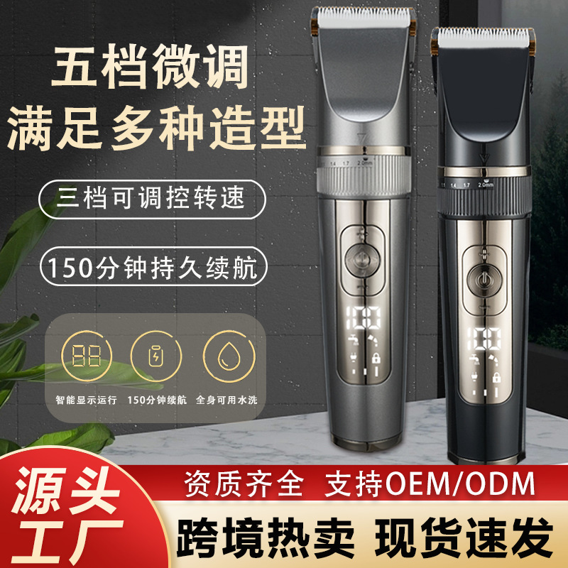 Pencukur rambut elektrik, gunting pemangkas rambut listrik lintas batas, USB dua isi daya, alat pemotong rambut listrik LCD portabel, pengiriman grosir