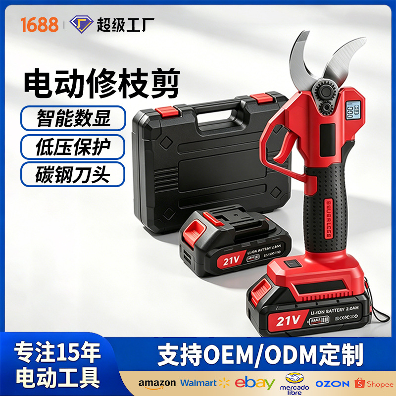 Gunting Pemangkas Listrik Daya Tinggi dengan Tampilan LCD Pohon Buah Pemangkas Gunting Listrik Multifungsi Isi Ulang Taman Rumah Tangga