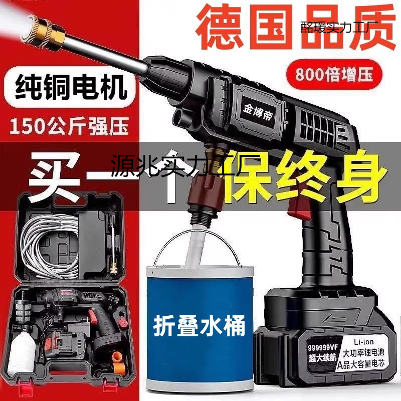Pistol air tekanan tinggi nirkabel mesin cuci mobil portabel artefak cuci mobil lintas batas pabrik grosir pistol air baterai lithium rumah tangga