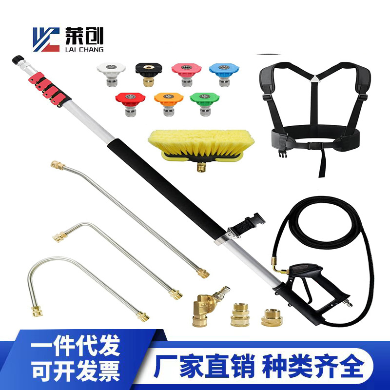 Pistol Air Tekanan Tinggi Batang Teleskopik Batang Pembersih Ekstra Panjang Empat/Lima Bagian Tali Punggung Pembersih Dinding Eksterior Batang Lengkungan Nozzle