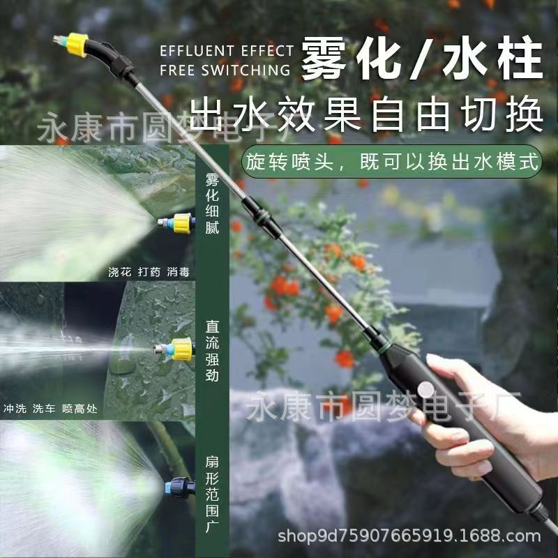 Pistol semprot elektrik portabel, penyiram tanaman berkebun dapat menyiram bunga obat disinfeksi dapat terhubung ember