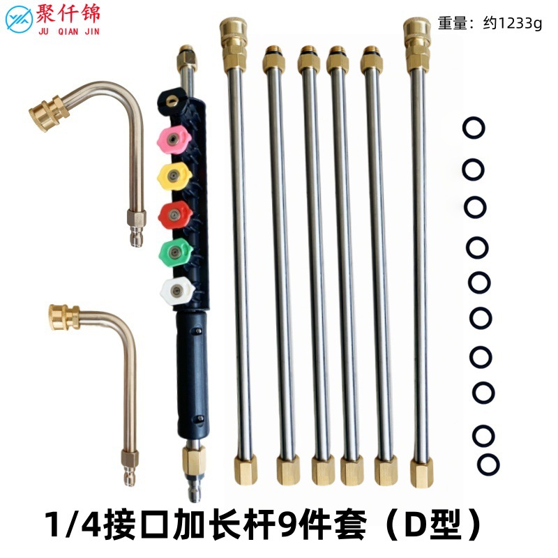 Mesin Pembersih Tekanan Tinggi Lintas Batas Batang Perpanjangan Pembersih Stainless Steel Batang Pembersih 1/4 Inci Atap 9 Set Batang Pembersih