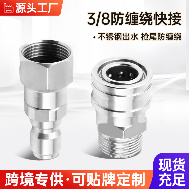 Aksesoris Mesin Cuci Tekanan Tinggi M22 14mm ke 3/8 Konektor Cepat Stainless Steel Anti-belitan Cepat Putus