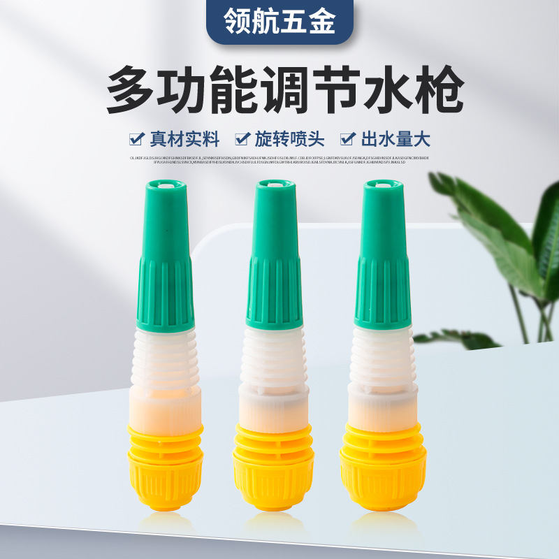 Penjualan langsung pabrik pistol air plastik cuci mobil injeksi langsung tipe Pagoda dapat disesuaikan 4 titik 6 Titik 1 inci kuning pistol air dapat disesuaikan