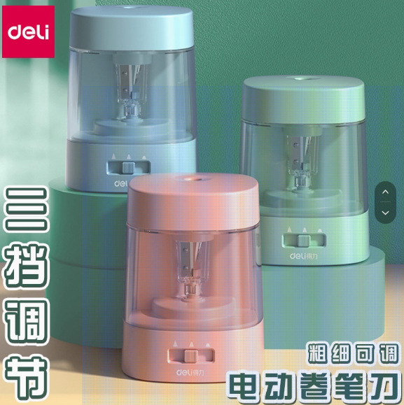 得力VA3电动削笔器美术生专用转笔刀三挡调节铅笔刀双电源卷笔刀