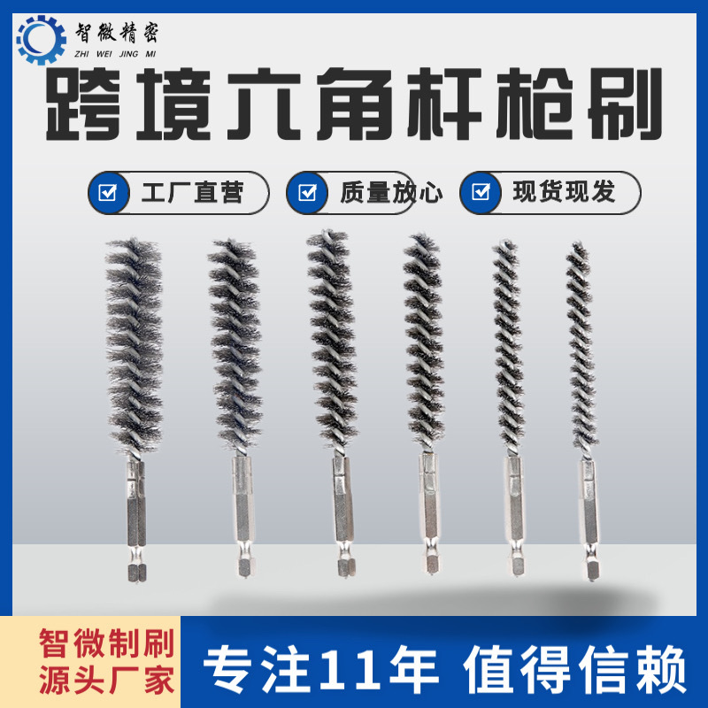 Sikat kawat baja tahan karat lubang dalam batang heksagonal listrik pipa bor sikat penghilang karat poles dengan pegangan sikat pipa deburring
