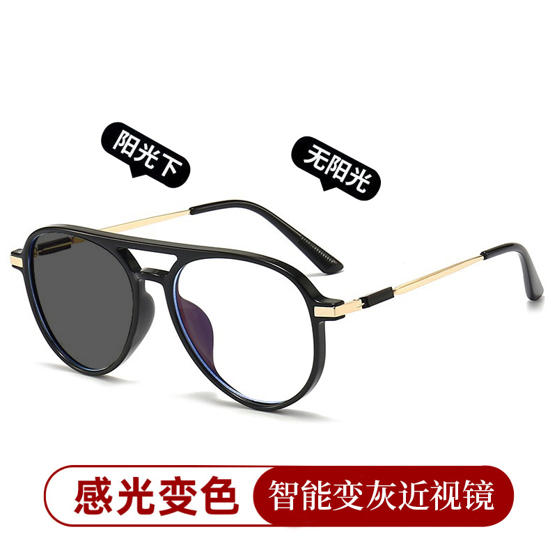 Kacamata miopia berubah warna sinar ganda pria dan wanita, kacamata bingkai katak HD pintar fotosensitif anti cahaya biru abu-abu 2412