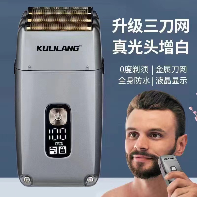 库里狼三刀头透明剃须刀增白器油头水洗刮胡刀充电式便携剃刀