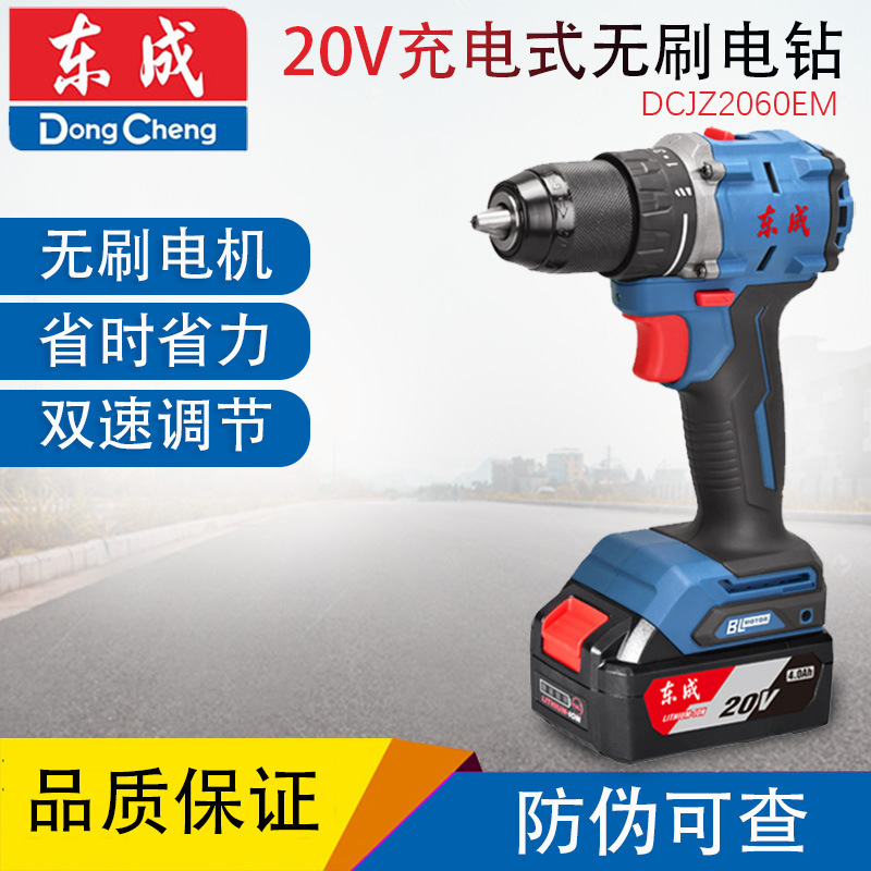 Dongcheng DCJZ2060 Bor Listrik Lithium Tanpa Sikat 20V Obeng Bor Tangan Multifungsi Bor Isi Ulang Dongcheng