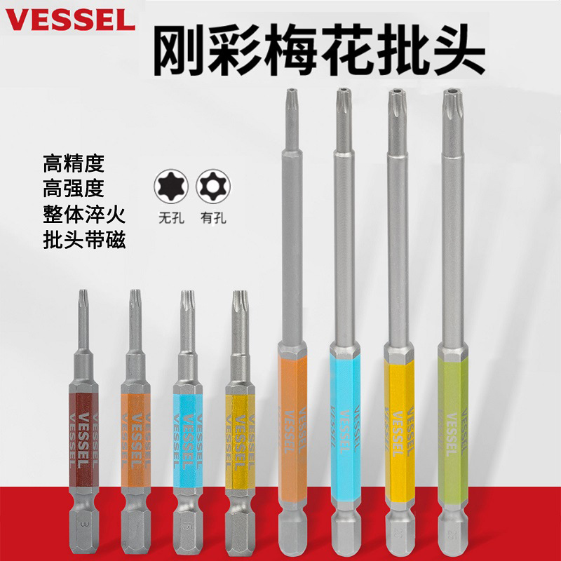 Kapal Weiwei obeng prem kepala GSVT obeng plum lubang tengah tipe bintang dengan obeng magnetik kepala soket segi enam