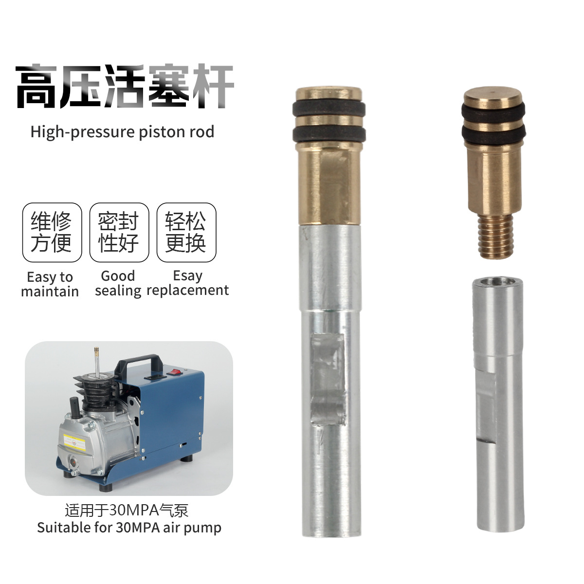 Pompa udara tekanan tinggi silinder ganda tunggal 30MPA Aksesori pemeliharaan khusus kepala piston tekanan tinggi batang piston pabrik penjualan langsung
