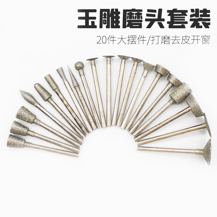 Jarum Gerinda berlian, alat ukir giok, batu mentah, memoles, jendela, giok, kepala Gerinda ukiran