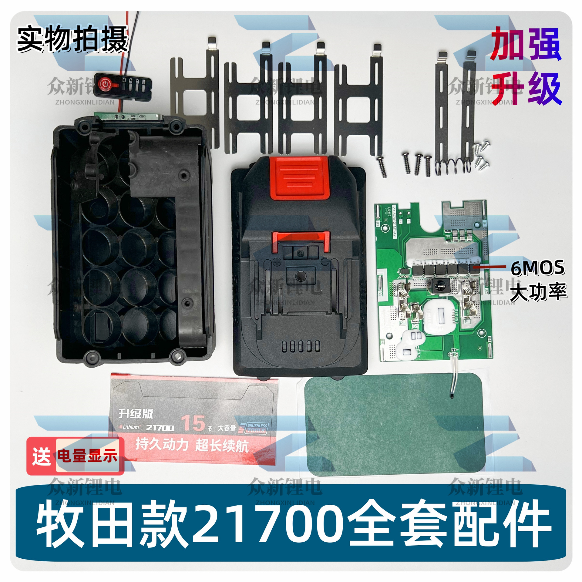 21700牧田款5节10节15节20节6Mos大功率5串21v锂电池套件带电显