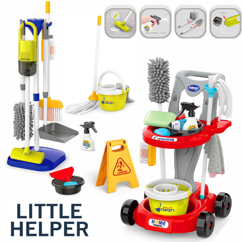 Cross-border mainan pembersih anak-anak, alat pembersih simulasi gerobak bermain rumah penyedot debu sapu pel pembersih