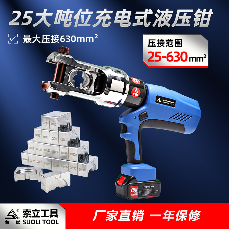 Penjepit hidrolik dapat diisi ulang tonase besar EZ-630 rentang crimping 25-630 kawat tembaga penjepit crimping elektrik portabel