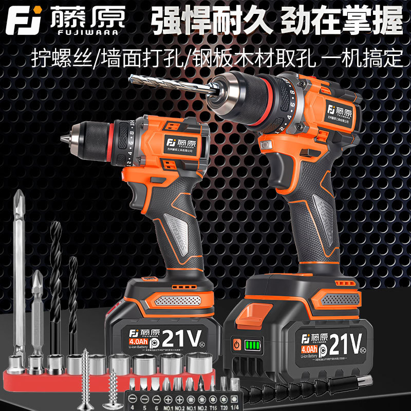 Fujiwara Lithium Bor Listrik Tanpa Sikat Isi Ulang Bor Baja Kecil Pengeboran Impact Bor Rumah Tangga Dua Penggunaan Bor Peralatan Obeng