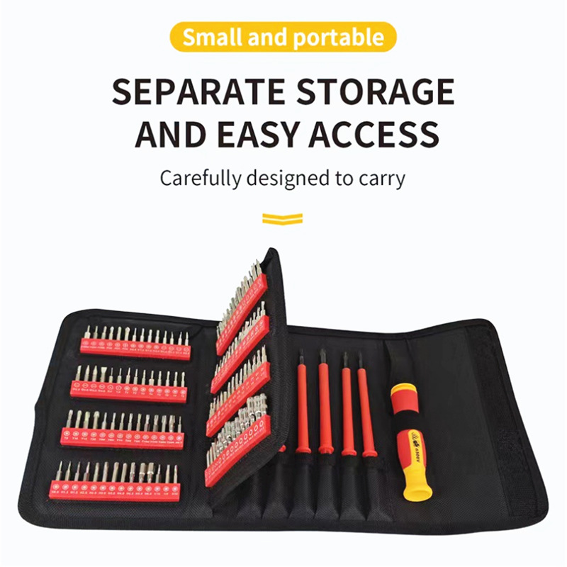 Obeng perbaikan presisi, kombinasi 124-in-one isolasi listrik batch presisi bentuk khusus segitiga u magnetik setelan obeng kecil