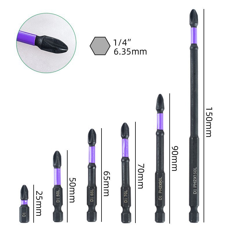 6PCS Non-slip Impact Obeng Silang Obeng Listrik Dengan Kekerasan Tinggi Set Obeng