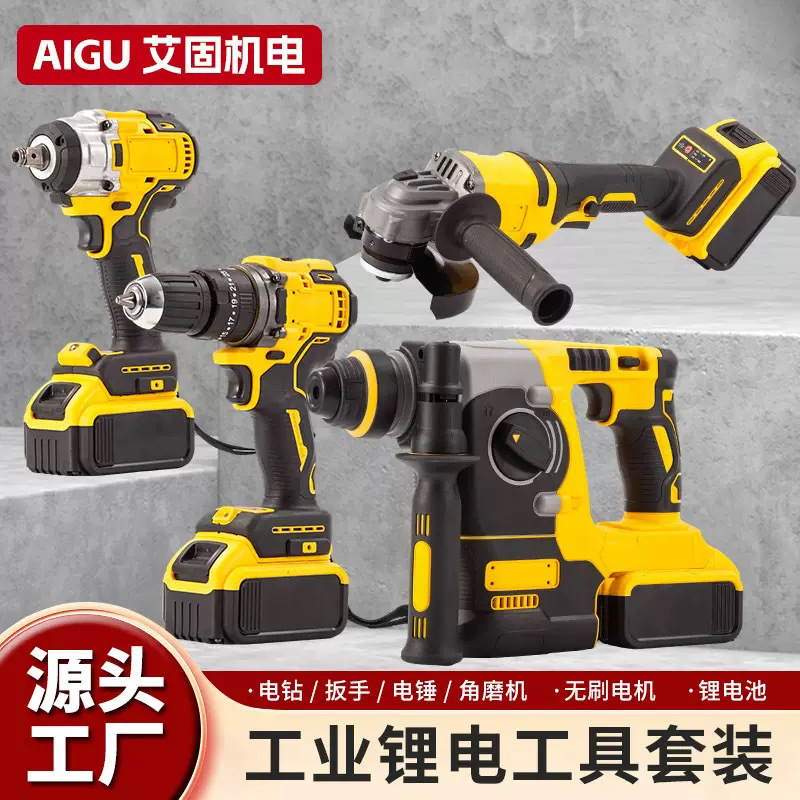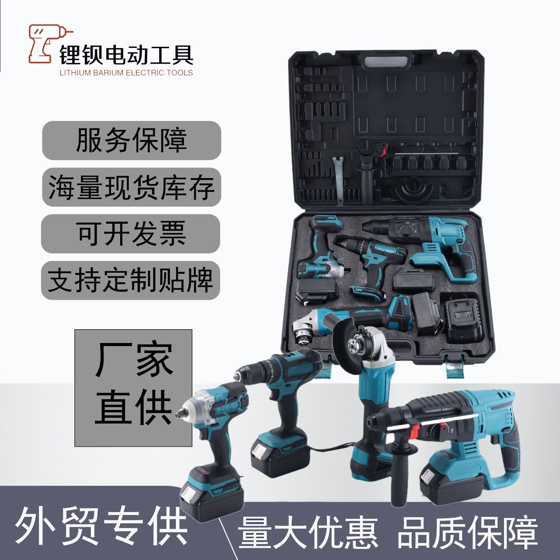 Setelan kombinasi perdagangan luar negeri lintas batas, bor listrik lithium daya tinggi multi-fungsi, kunci pas sudut penggiling listrik kombinasi palu elektrik