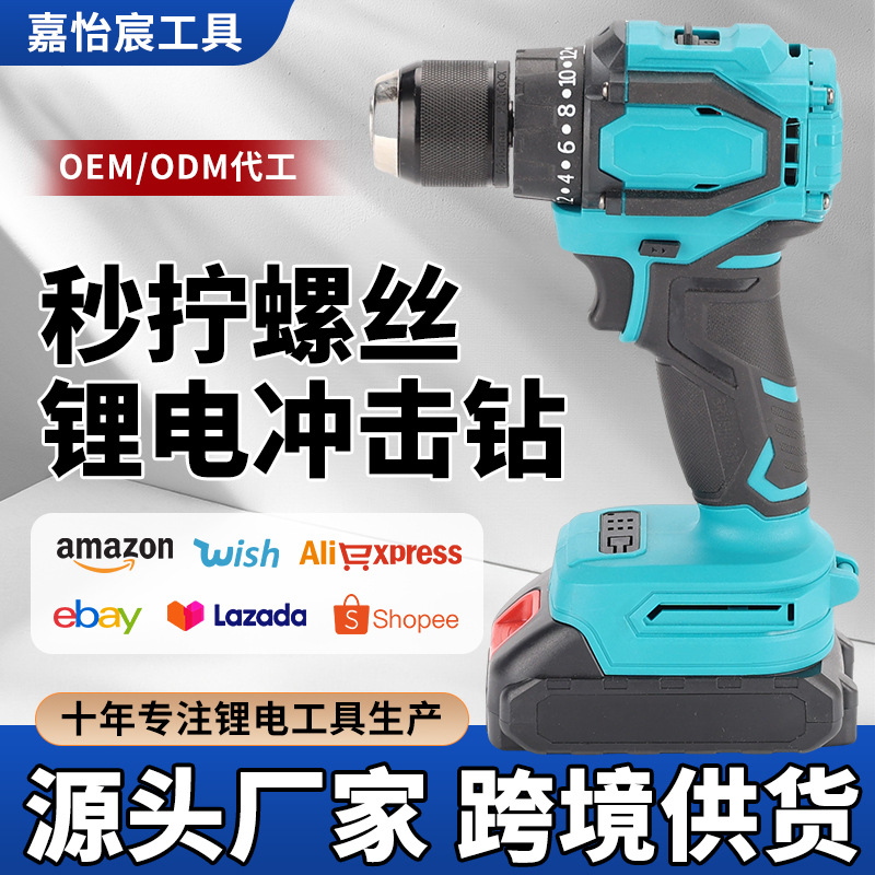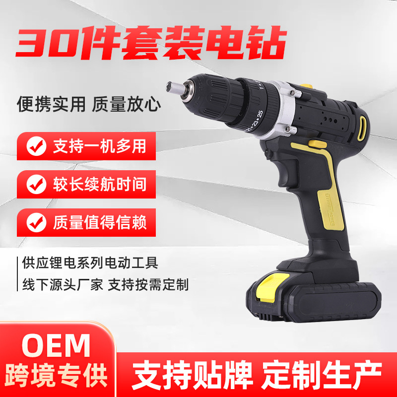Bor tangan lintas batas 21v, bor tangan kekuatan tinggi dapat diisi ulang Lithium elektrik perdagangan luar negeri multi-fungsi rumah tangga bor tangan kecepatan ganda