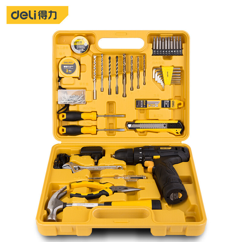 Deli 38 buah bor tangan dapat diisi ulang Lithium bor listrik multi-fungsional Rumah Tangga kotak peralatan kombinasi setelan DL1038L