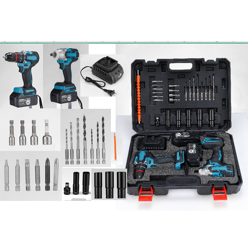 Tiga set bor listrik lithium isi ulang mesin penggiling sudut mesin pemotong dampak bor daya tinggi nirkabel lintas batas