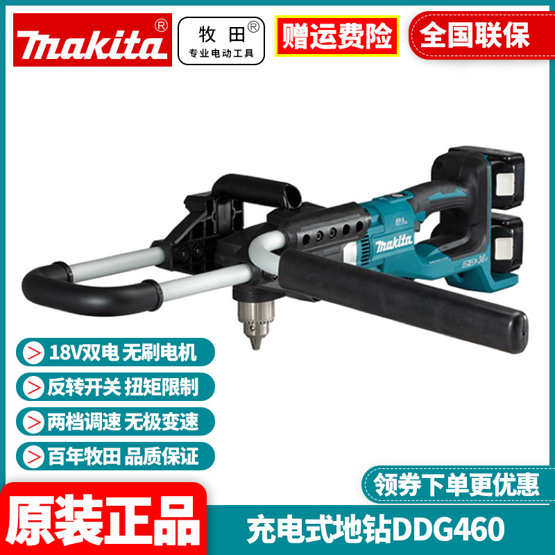 Grosir Mutian Makita sudut pengisian bor tanah DDG460 bor listrik Lithium pengeboran kayu 36V tanpa sikat 18V baterai lithium
