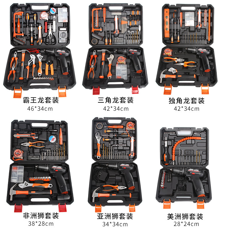 Grosir kotak alat multifungsi, bor elektrik rumah tangga pekerjaan kayu set lengkap