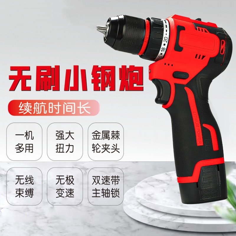 Bor listrik Lithium tanpa sikat, gergaji listrik Lithium kecepatan tinggi kecepatan ganda tanpa sikat senjata baja kecil multifungsi