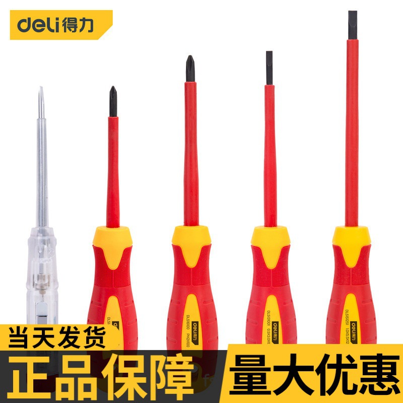 Deli obeng terisolasi obeng Silang kepala VDE listrik obeng khusus alat obeng obeng mulut datar