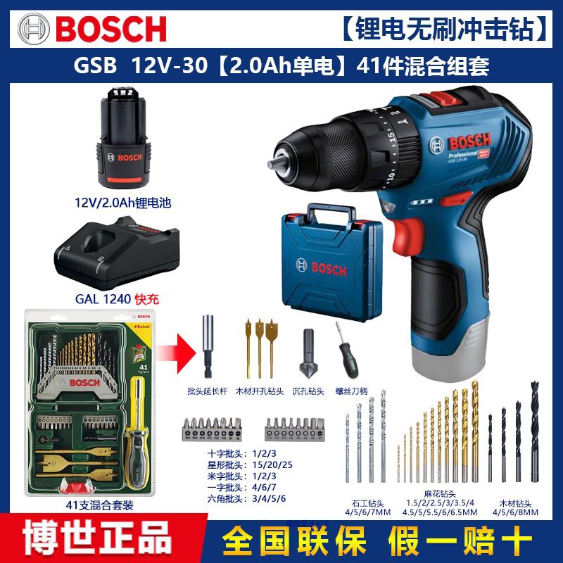 Bor Tangan GSB12V-30 Bosch Bor Listrik Alat Bor Dampak Isi Ulang Dr. Bor Pistol Tangan 12V Motor Brushless