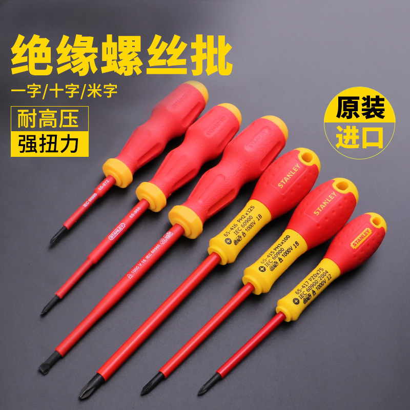 Stanley obeng insulasi warna ganda pegangan obeng nasi berbentuk silang obeng elektrik tahan tekanan khusus