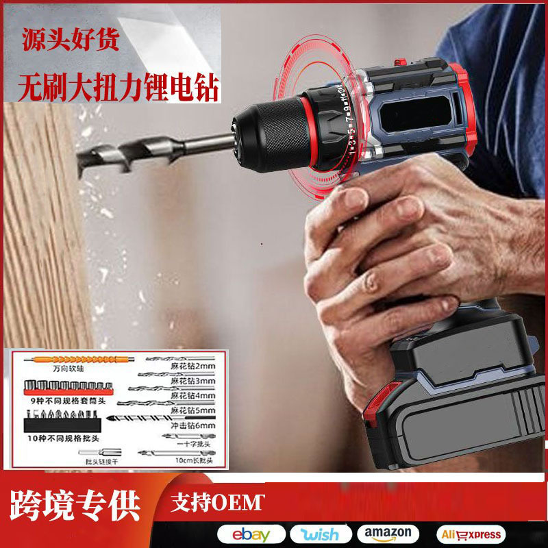 Bor Tangan Multifungsi Lintas Batas Daya Tinggi Bor Dampak Daya Tinggi Perdagangan Luar Negeri Bor Listrik Litium Nirkabel Penggunaan Ganda Set Bor Pistol Tangan