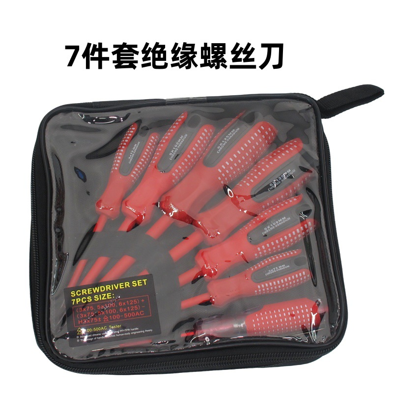 Tujuh buah obeng listrik pegangan terisolasi, setelan tahan tekanan 1000V batch obeng lintas kata dan setelan rumah tangga
