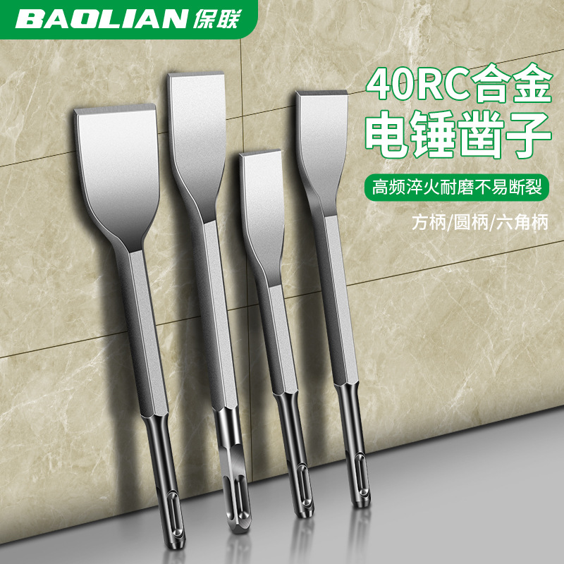 Baolian Power Hammer Curang Ekstra Tebal Kekerasan Tinggi Kepala Bor Berbenturan Pahat Datar Hexagonal Pegangan Bulat Pegangan Bulat Pegangan Bulat Tekuk Listrik