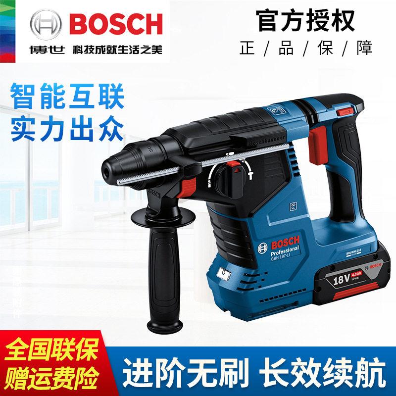 Bor listrik Bosch 18V, dapat diisi ulang Lithium tanpa sikat, bor beton dampak beton, GBH187-LI pick elektrik empat lubang multifungsi