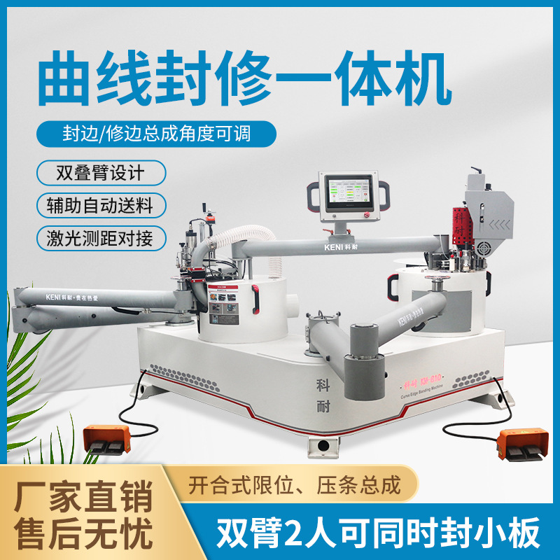 Mesin pengikat tepi linier melengkung otomatis, mesin pertukangan bentuk khusus lengan ayun tepi melengkung pelat meja penjepit tepi dan mesin pemangkas