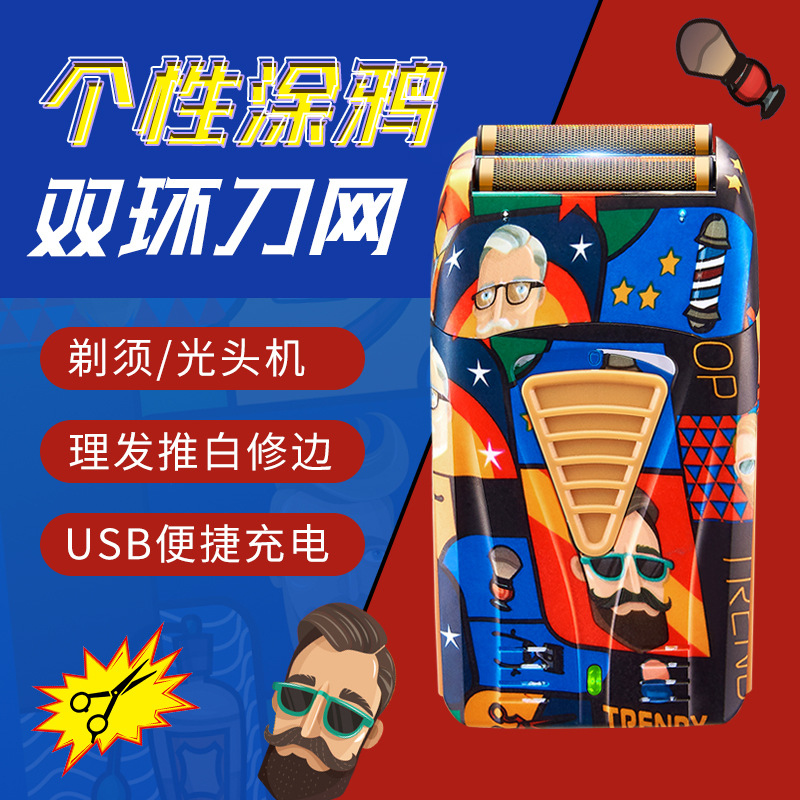 Pisau cukur grafiti pribadi, pisau janggut bolak-balik, cincin ganda pisau potong rambut jaring mesin pemangkasan putih