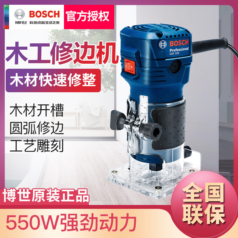 BOSCH edge pemangkas GKF550 mesin slotting kayu, alat listrik penggilingan Bakelite kecil