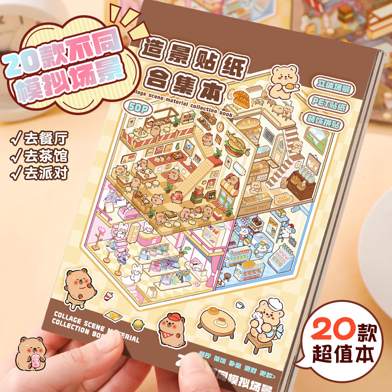 Koleksi Stiker Lansekap Buku Ini Stiker Pemandangan Miniatur Pondok Tiga Dimensi 3 Dimensi Stiker Mainan Pendidikan Buku Tangan Anak-anak Stiker Stiker